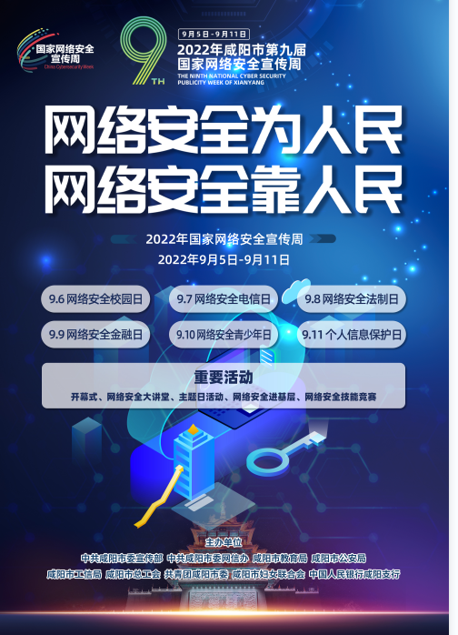 2022年咸陽(yáng)市第九屆國(guó)家網(wǎng)絡(luò)安全宣傳周。